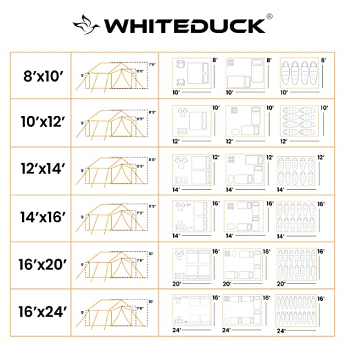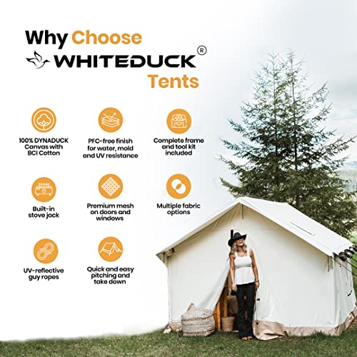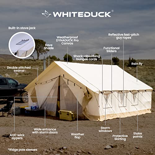 WHITEDUCK Alpha Canvas Wall Tent Waterproof 4 Season Outdoor Camping & Hunting Tent w/Heavy Duty Aluminum Frame, Best for Large Groups, Families & Outfitters (16’x24′, Fire Water Repellent)