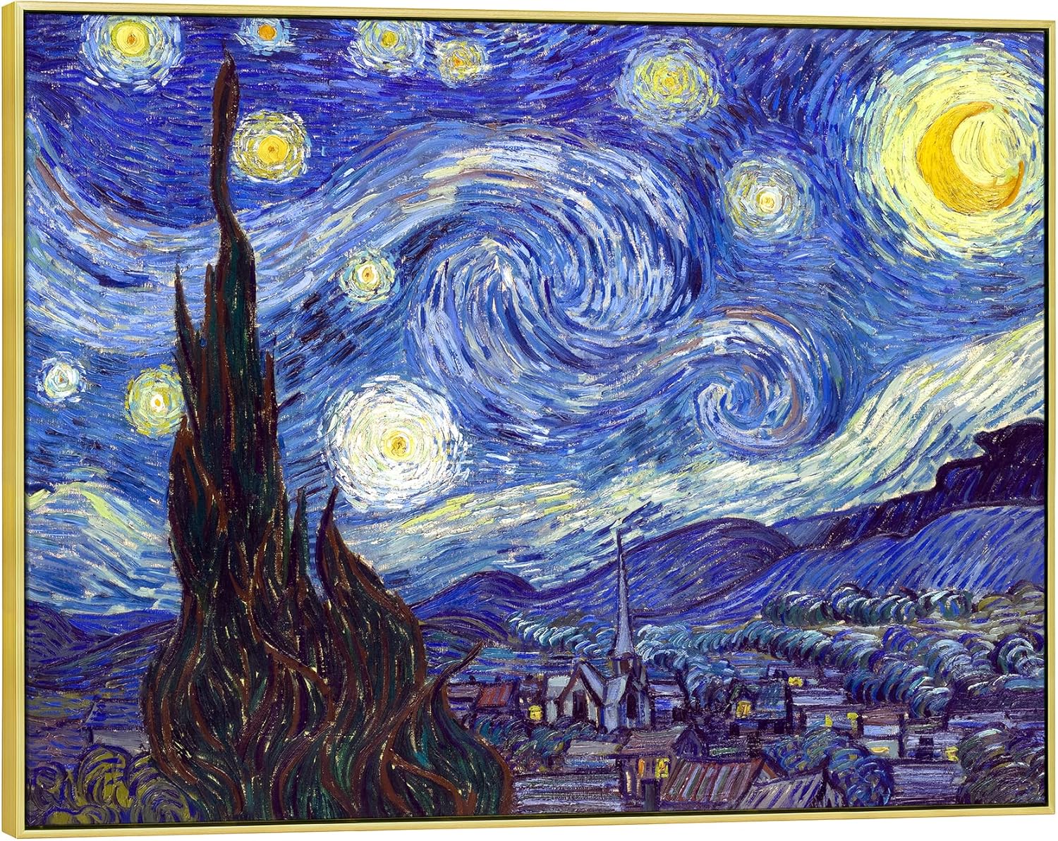 Large Gold Framed Famous Art-Starry Night by Vincent Van Gogh