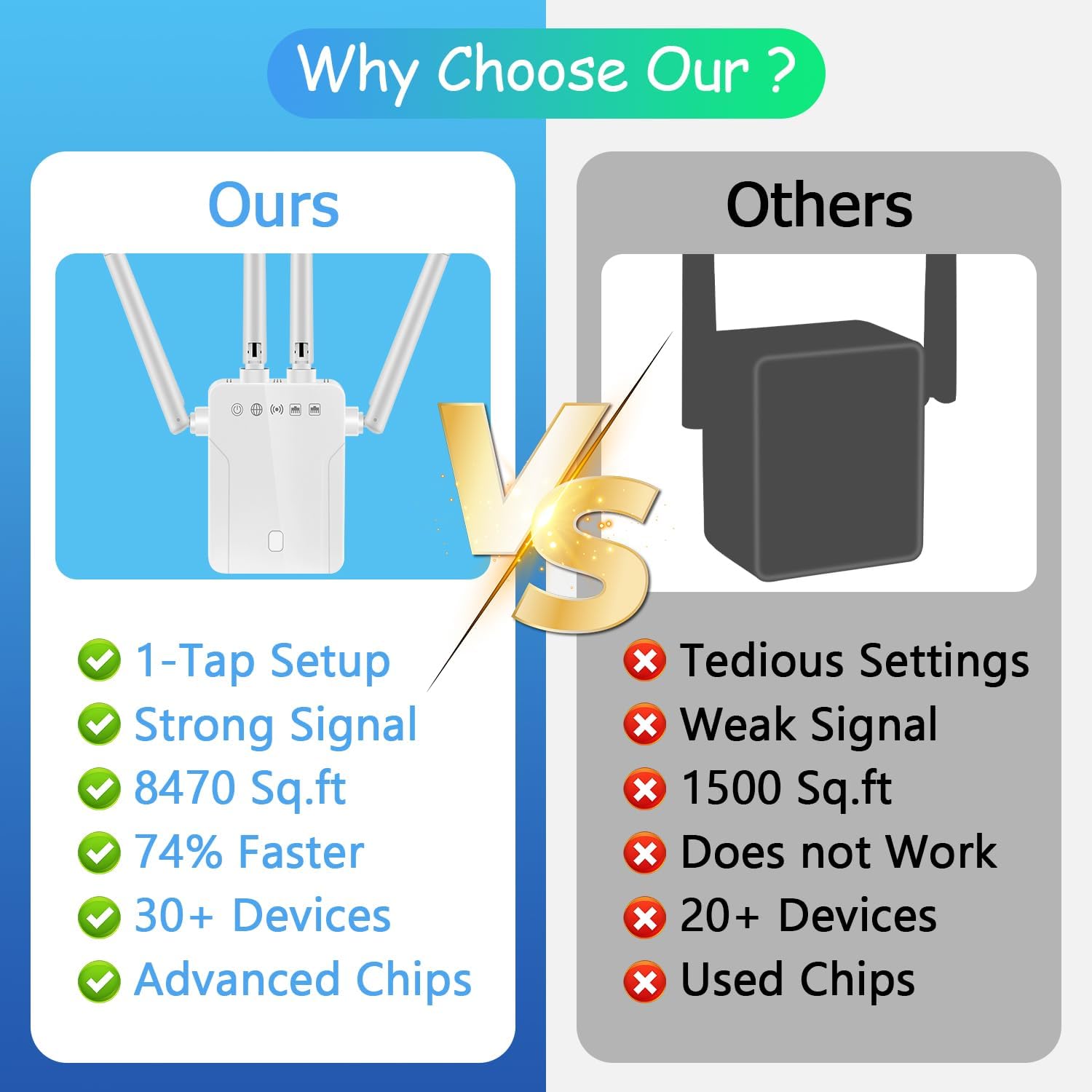 Specification: WiFi Extender Signal Booster for Home: Internet Repeater Long Range Covers Up to 45+ Devices and 8470 Sq.ft for Apartment Basement Office House