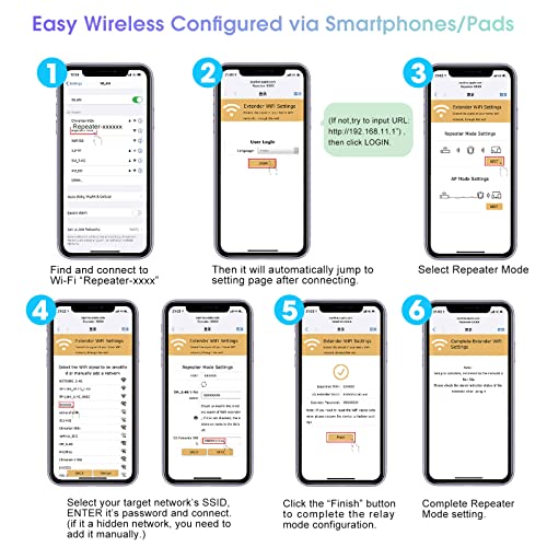 【One-touch set up】Tap WPS connects to your device within 1 minutes, Wall plug design and portability.Or use the web browser on your smartphone/tablet /PC for settings. It is easy to set up according to the user manual, without complicated steps and techniques.