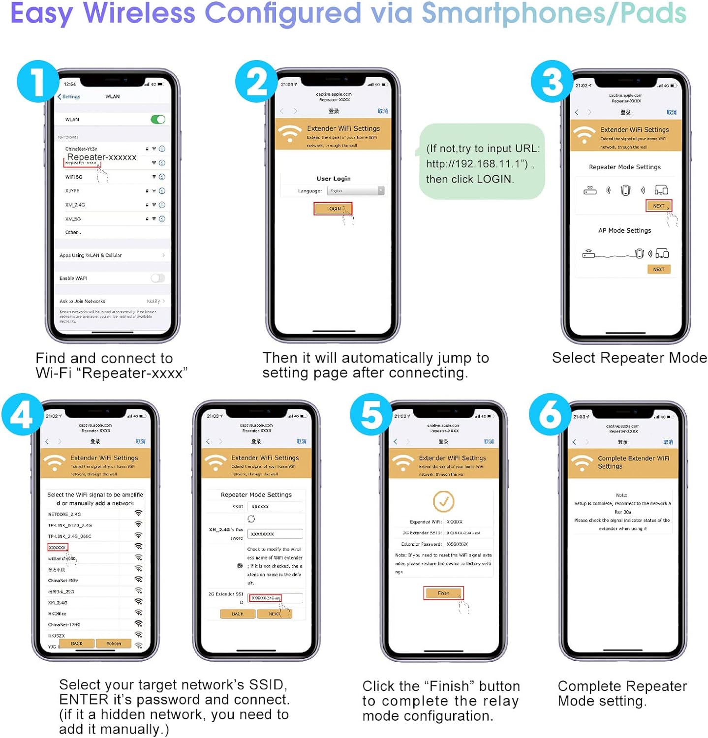 【One-touch set up】Tap WPS connects to your device within 1 minutes, Wall plug design and portability.Or use the web browser on your smartphone/tablet /PC for settings. It is easy to set up according to the user manual, without complicated steps and techniques.