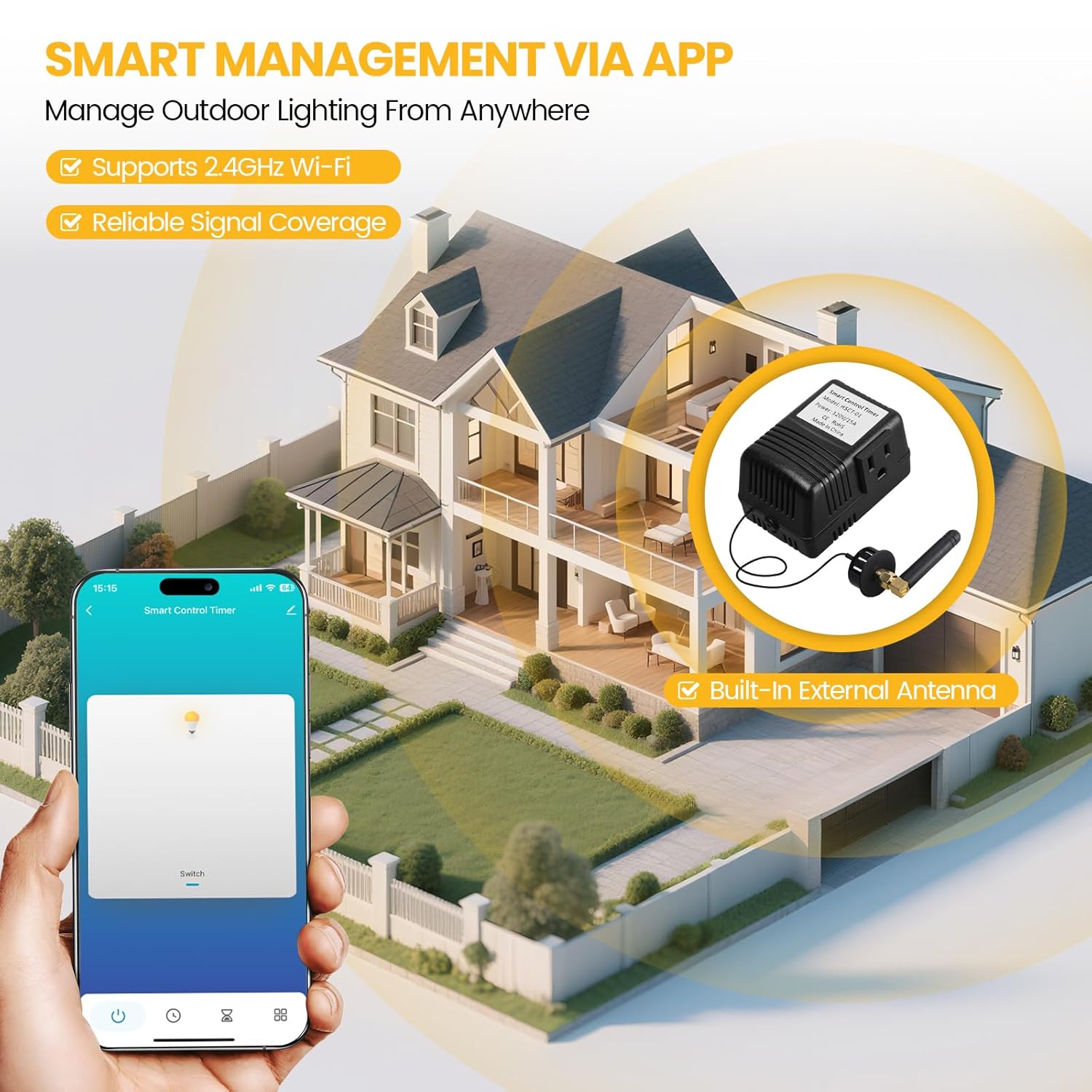 SMART MANAGEMENT: The Zuomeng Smart Control Timer allows you to easily manage your outdoor lighting system via the Smart Life APP. You can remotely control your low-voltage landscape lighting system, providing a more convenient and energy-efficient setup.