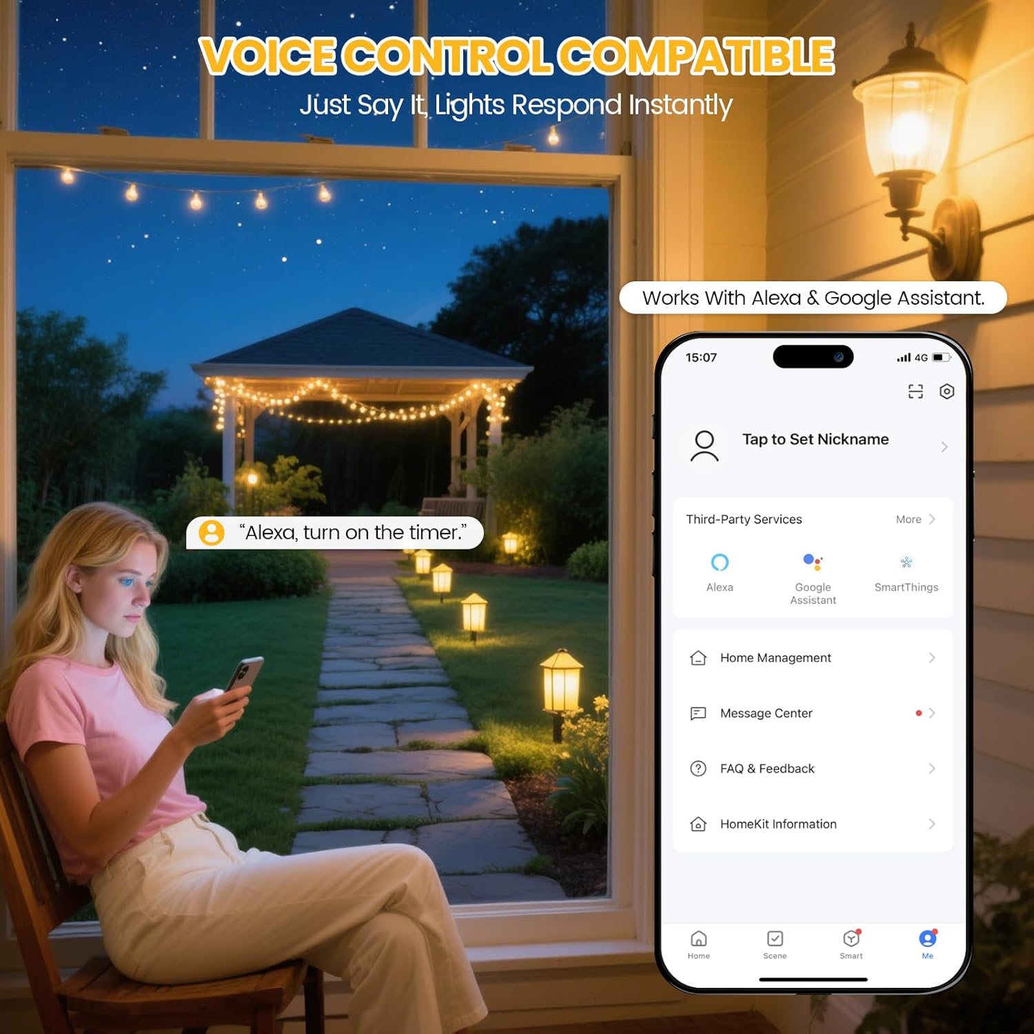 VOICE CONTROL: Compatible with Alexa and Google Assistant, you can control your landscape lighting with simple voice commands, such as “Alexa, turn on the timer”, making it easy to manage your lighting system.