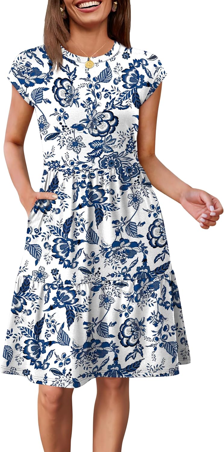 WIHOLL Summer Dresses for Women 2026 Cap Sleeve Casual Sundresses Floral Tiered Swing Babydoll Vacation Mini Dress