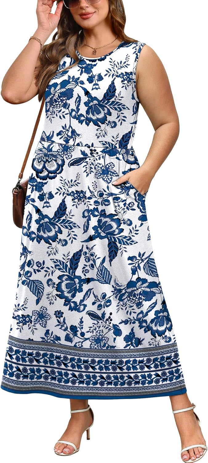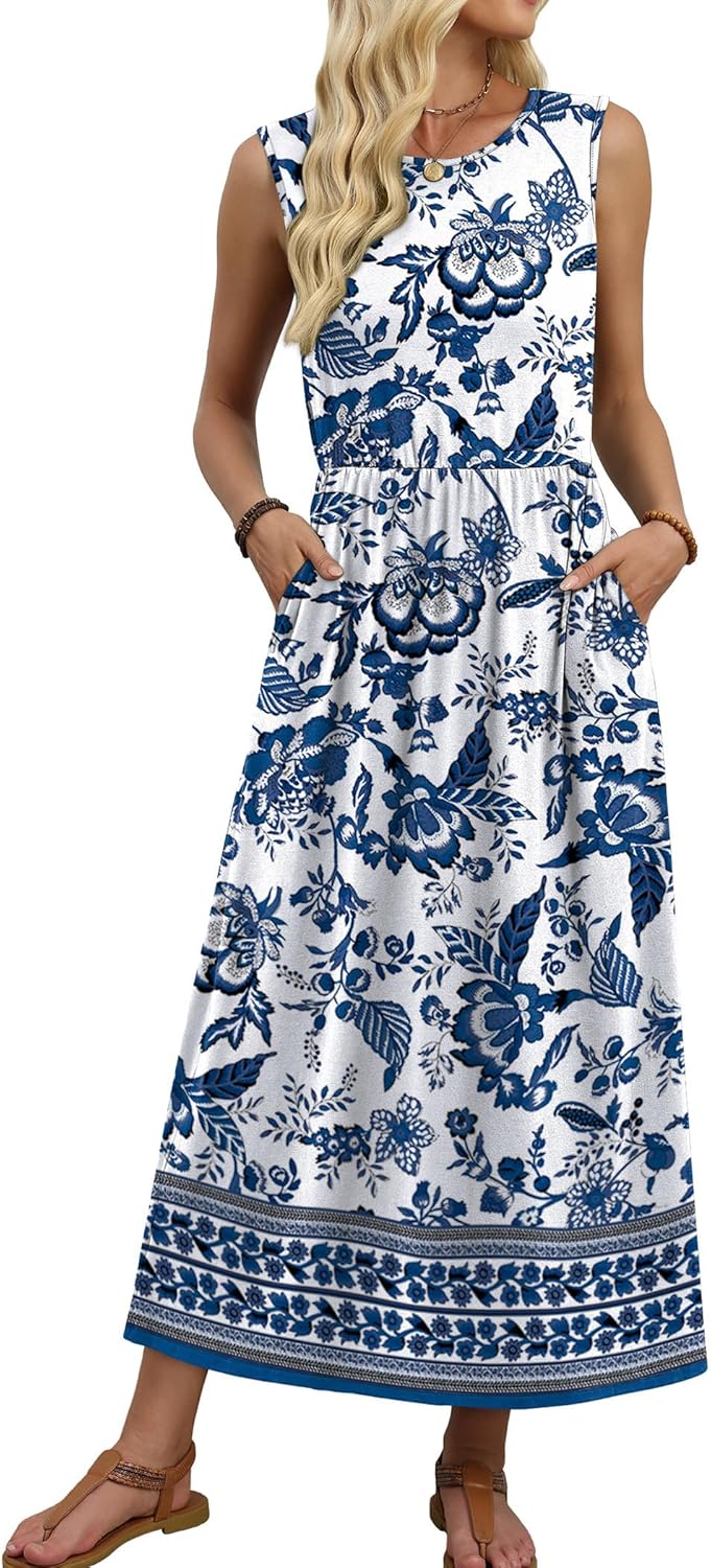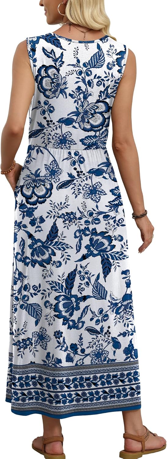WIHOLL Summer Dresses for Women 2026 Maxi Dresses Long Flowy A Line Sleeveless Sundresses with Pockets