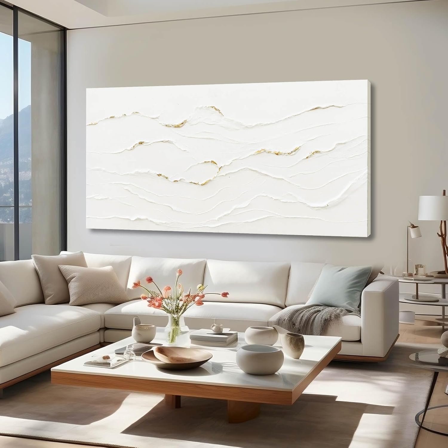 WINKAILIN White Painting Artwork Simple Decorative Pictures 29″x58″ Abstract Wall Art for Living Room Modern Wall Hanging Decor for Kitchen