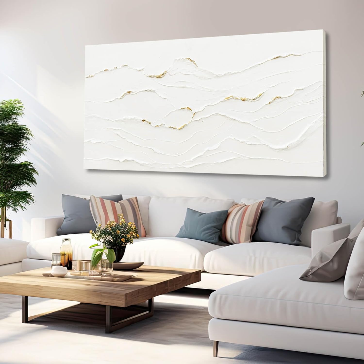 Wall Art Size: The art wall decoration measures 29×58 inches, and the white line wall decor becomes a highlight throughout the room, adding a touch of beauty.