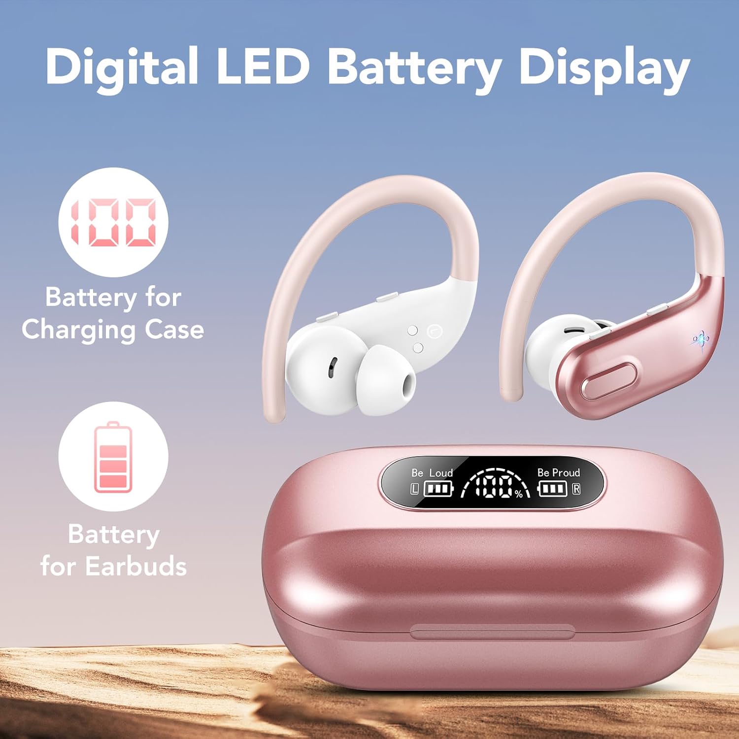 【80 Hours Playtime and LED Display】: Running headphones provides up to 10 hours continuous using time on a single charge, portable charging case can charge the earbuds for 6-7 times, giving 80 hours of a total playtime. Whether on the road or in daily life, it will provide unparalleled convenience and smart experience. The LED display on earphones accurately display the remaining power of charging case and the charging progress of Wireless ear buds.