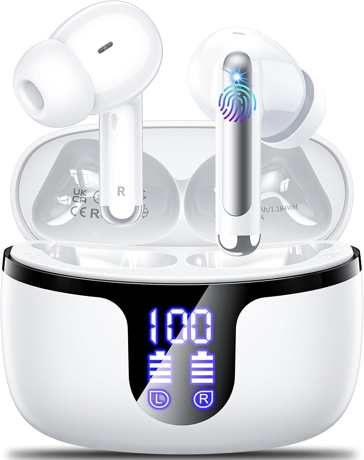 Wireless Earbuds Bluetooth 5.4 Headphones HiFi Stereo 42H Playback in Ear with 4 ENC Noise Cancelling Mic, IPX7 Waterproof and LED Battery Display Screen for Running Fitness Office Ear Buds in White