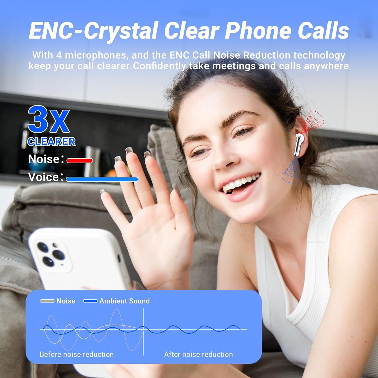 【HiFi Stereo and ENC Noise Reduction】The Monyhigh S48 wireless earbuds, with advanced HiFi stereo sound, bring crisp high notes, rich mid notes, and deep bass, creating an immersive music atmosphere and showcasing studio-level sound quality. These Bluetooth Earbuds feature an upgraded ENC microphone that reduces 95% of background noise, ensuring your calls are loud and clear even on busy streets or buses—perfect for clear communication through your bluetooth headphones.