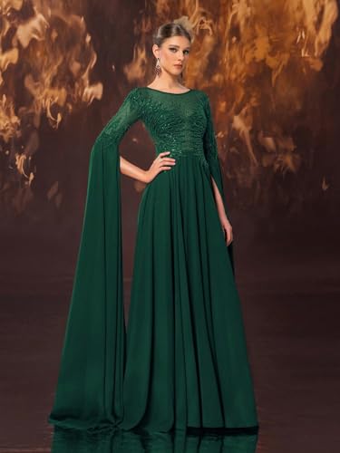 Women’s Dress Round Neck Casual Dress Extra-Long Sleeve Satin Slim-Fit Floor-Length Pleated Style Dresses Simple & Elegant Evening Gown for Formal Occasion Daily Wedding Party Cocktail Party Green