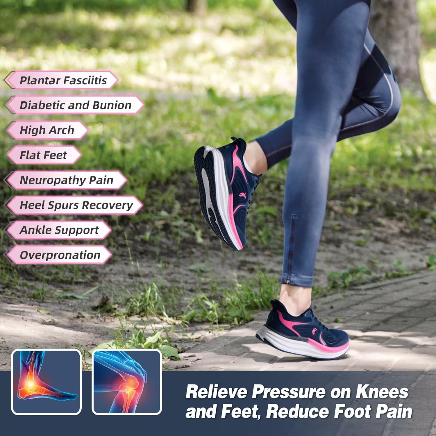 Women’s Orthopedic Road Running Shoes: Comfortable Casual Arch Support Plantar Fasciitis Athletic Sneakers, High Arch Flat Feet Tennis Sports Work Walking Shoes for Foot and Heel Pain Relief
