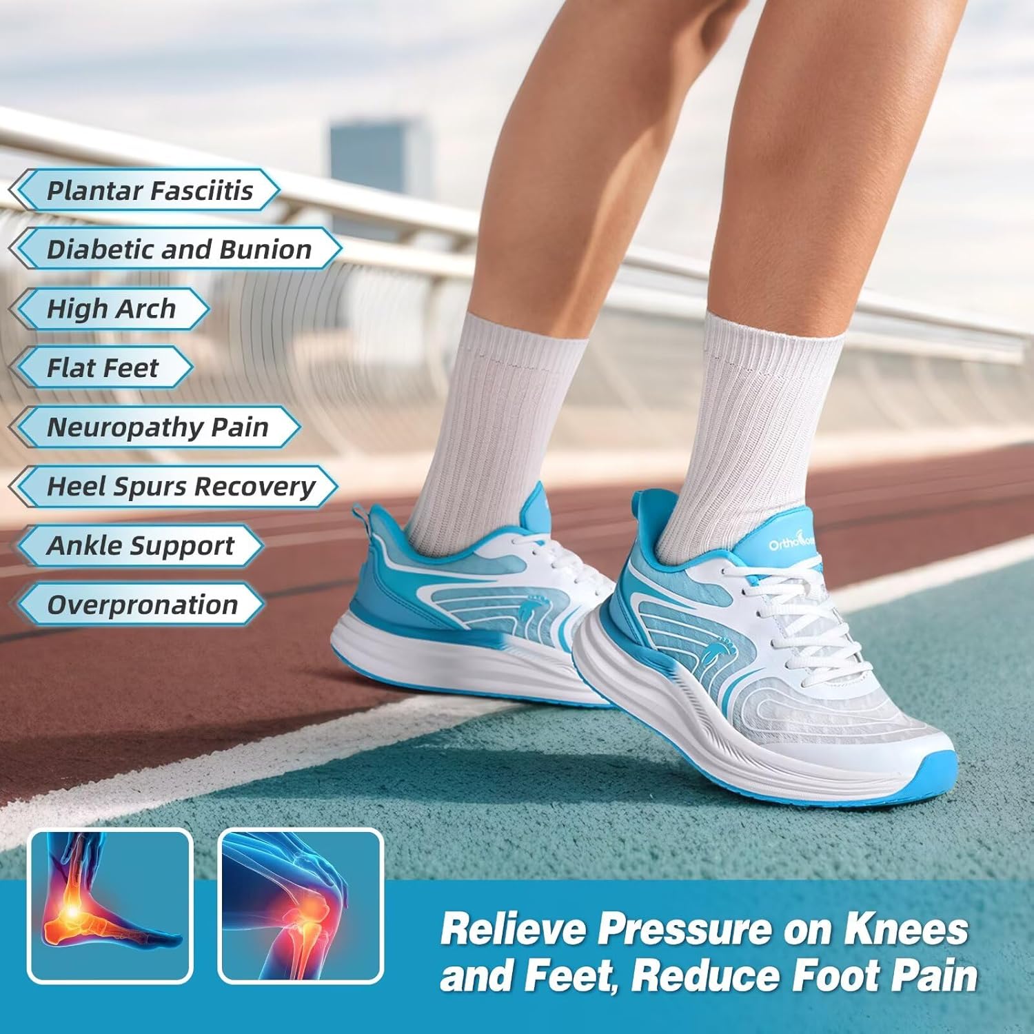 Women’s Orthopedic Road Running Shoes: Comfortable Casual Arch Support Plantar Fasciitis Athletic Sneakers, High Arch Flat Feet Tennis Sports Work Walking Shoes for Foot and Heel Pain Relief