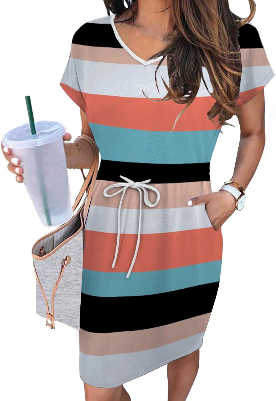 Womens Summer Dress Casual Short Sleeve Tie Front A-Line T Shirt Dresses