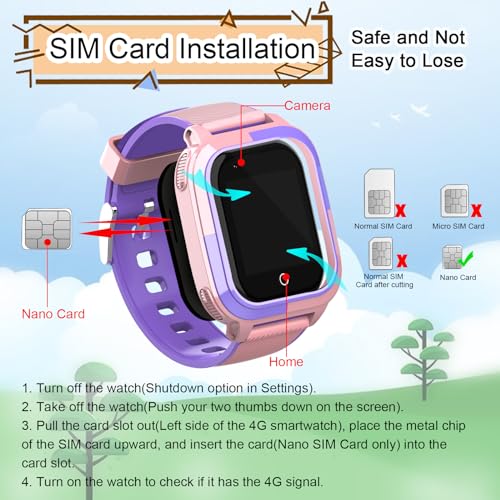 We suggest T-mobile 4G sim card if you want use your own card. Verizon ISN’T compatible! This watch is IP67 waterproof, do NOT wear the watch to swim or take a shower, and it is best to take down the watch to wash hands or do other work and water contact