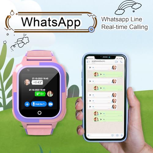 wonlex Kids Smart Watch with SIM Card, 4G Kids GPS Tracker Support Whatsapp Line Real-time Calling Voice Message SOS Camera, Birthday Gifts for Girls Boys Aged 4-16(Pink)