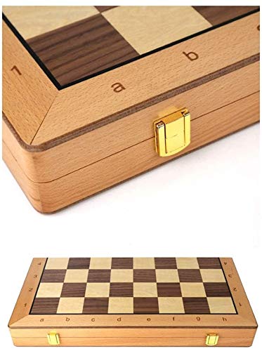 Wooden Chess and Checkers Set 2 in 1 Board Games with Felted Game Board Interior for Storage Travel Portable Folding Sets Chess Sets (42cm)