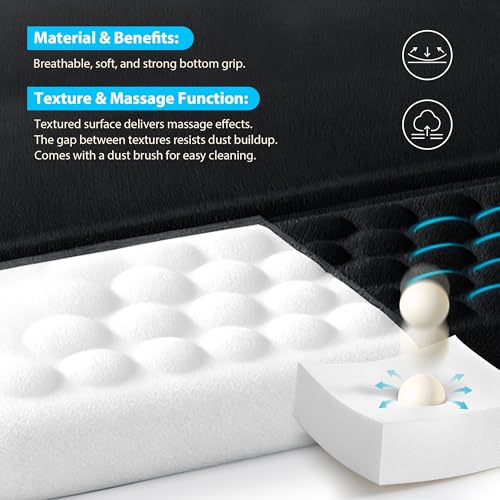 【Extra Thick High-Density Memory Foam】The wrist rest for computer keyboard is filled with extra thick high-density memory foam, delivering a plush, supportive feel with rapid rebound and long-lasting durability. It maintains shape through daily use, resisting sagging or collapsing for consistent comfort. Included dedicated dust brush: Effortlessly clears debris/hair, fixing textured surface\’s debris-trapping flaw.