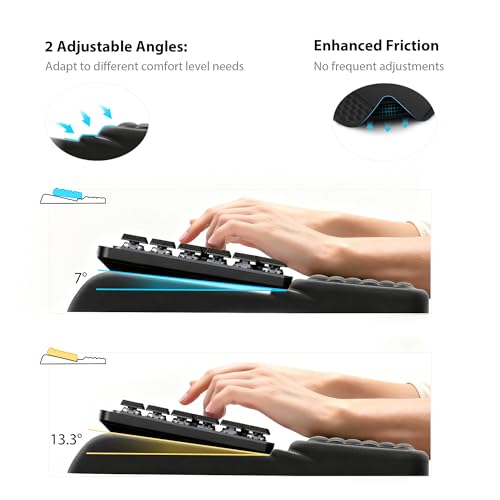 【Ergonomic Keyboard Wrist Rest】Engineered for ergonomic comfort, this keyboard pad features an integrated wrist rest that conforms to your wrists’ natural curve, offering exceptional support during long typing sessions. Adjust the keyboard’s position on the holder to match your posture—making extended typing smoother and less tiring.