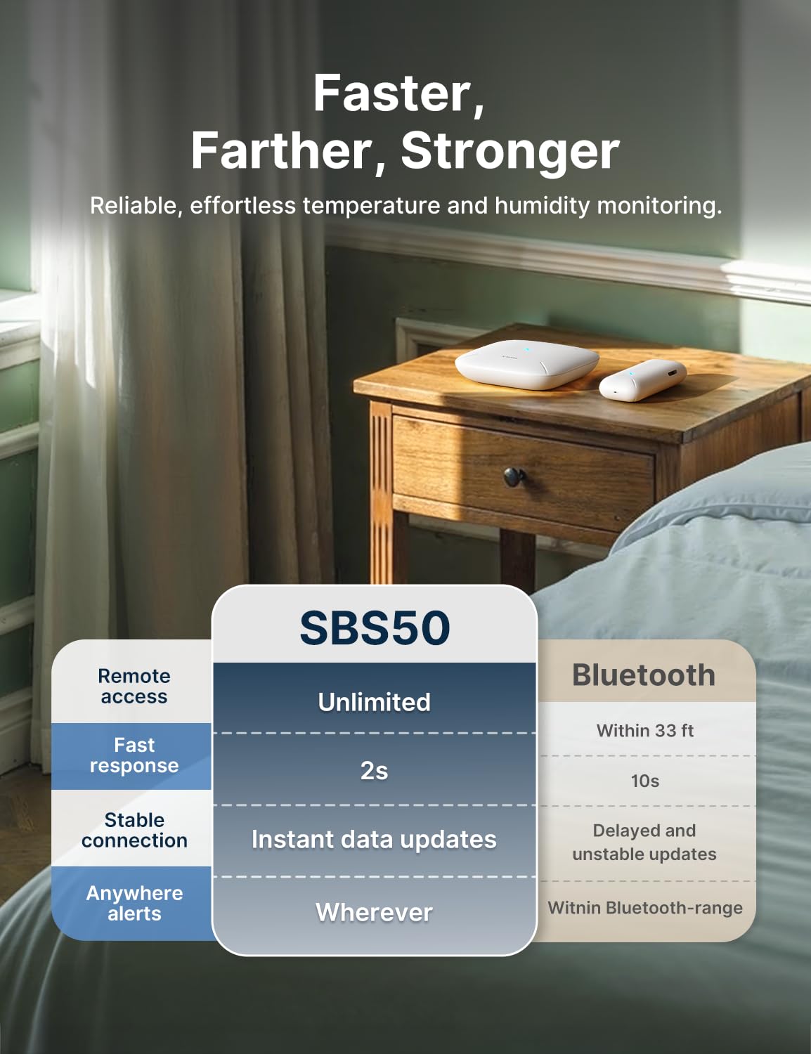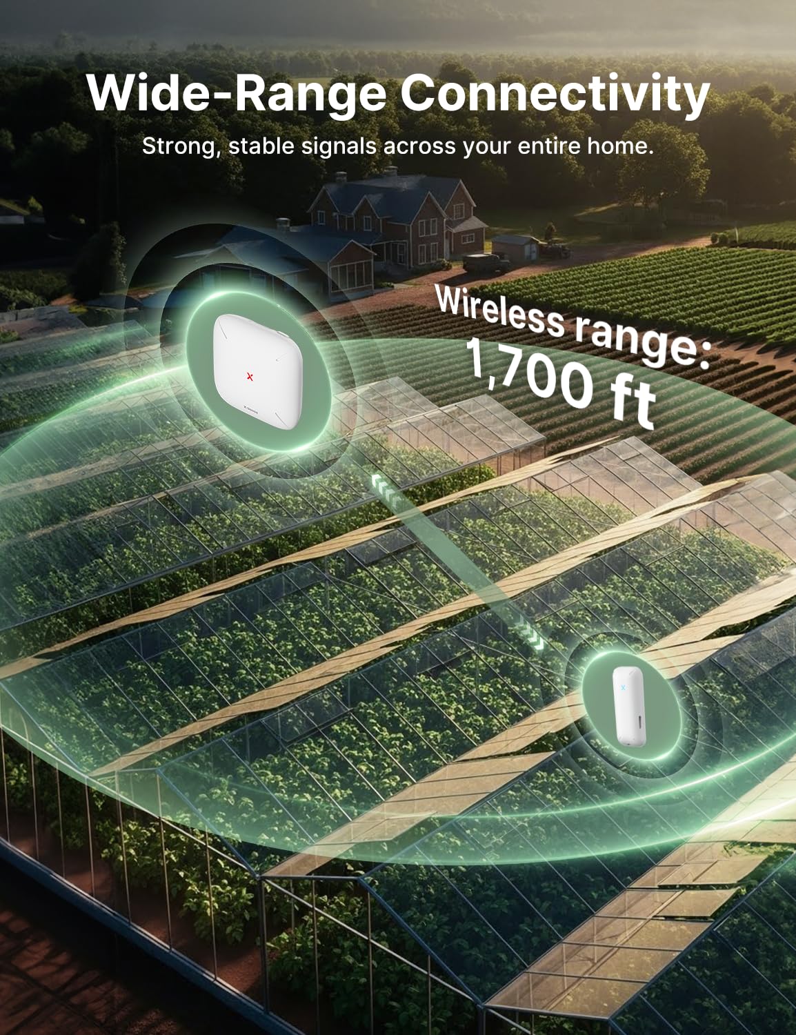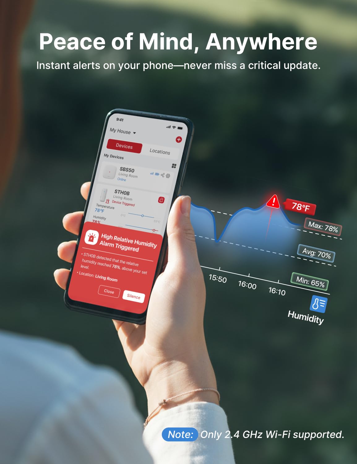 Monitor Your Whole Home: Link up to 50 devices to one base station, including a maximum of 10 thermo-hygrometers, with wide coverage up to 1700 ft (500 m); monitor your entire home, from bedrooms to basements, and receive instant alerts on your phone anytime, anywhere