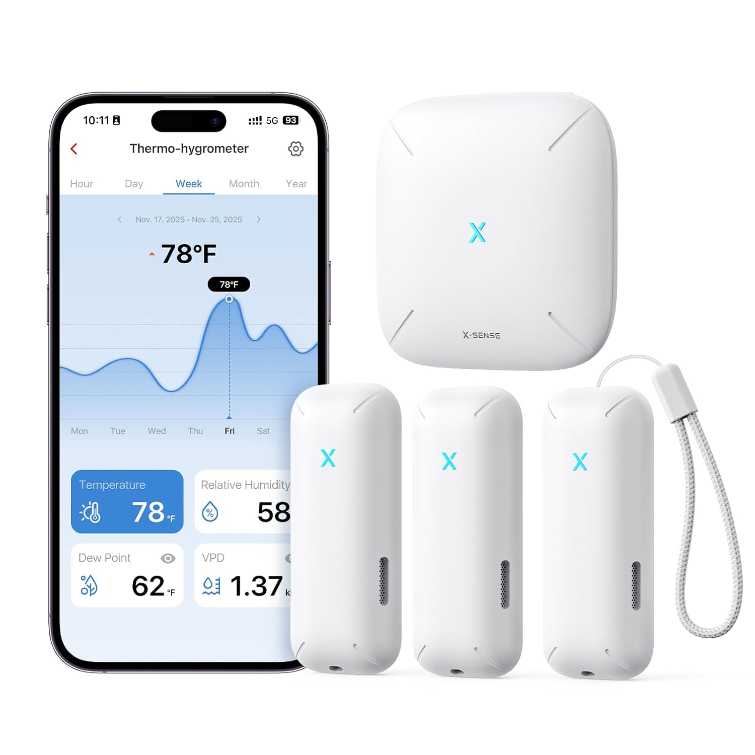 X-Sense 2.0 Indoor WiFi Hygrometer Thermometer, Hygrometer Indoor Humidity with App Control, Temperature Sensor for House, Gardening, Data Storage Export at No Charge, 3 Sensors & 1 Base Station