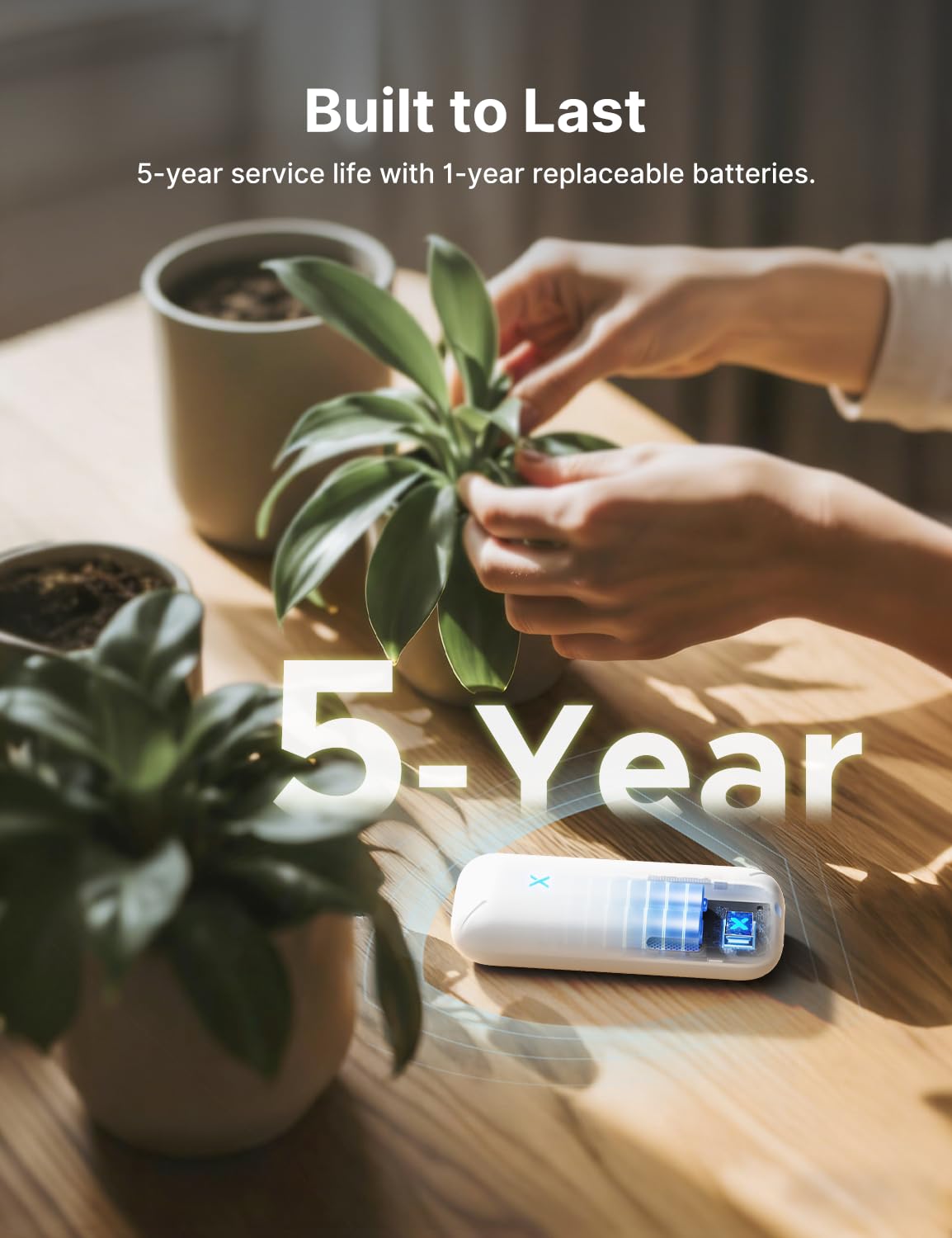 Up to 1-Year Battery Life: Designed for a 5-year lifespan, the device uses 1200 mAh replaceable AAA batteries that can last up to one year, with low-battery alerts sent to your app