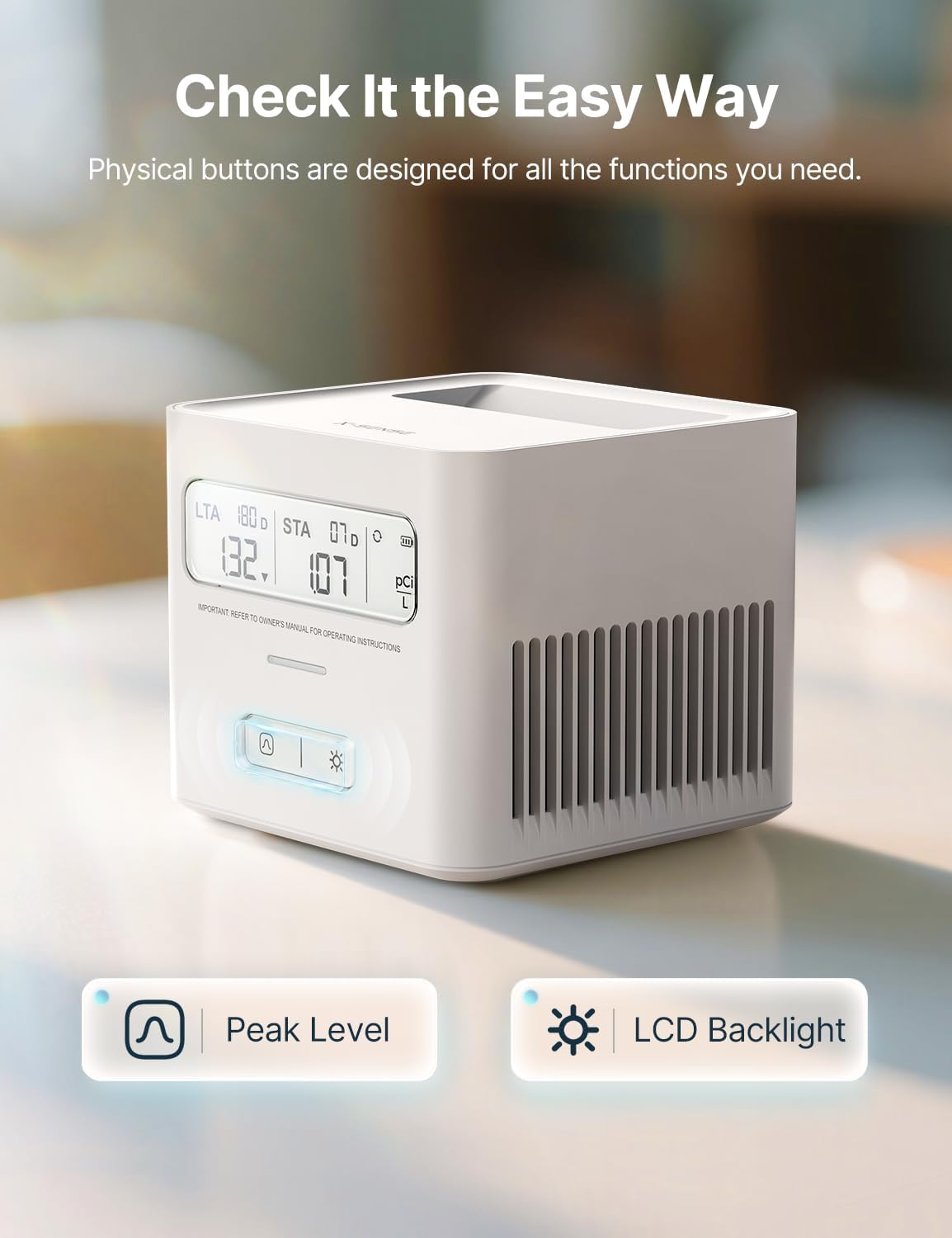 Set-and-Forget Convenience: This radon detector is ready out of the box, no setup needed; it is easy to use for the elderly; the battery life lasts up to 24 months under normal usage, thanks to low power consumption technology