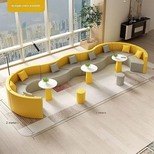 XAAKDELPO Modern Office Lounge Furniture Set, S-Shaped Curved Leather Sofa and Coffee Table, Reception Waiting Area Seating for Office, Hotel, Lobby(E)