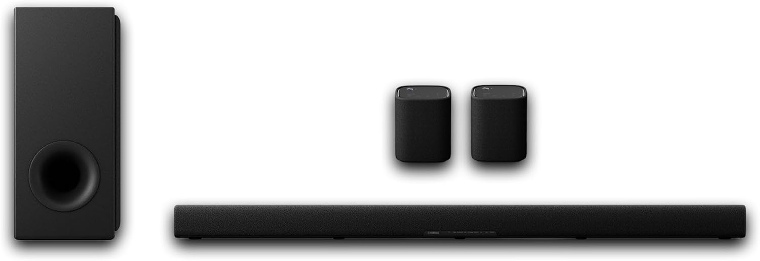 Yamaha Bundle Includes: (1) True X BAR 50A Dolby Atmos Sound Bar and (2) True X 1A Wireless Surround Sound Speakers. The Yamaha True X BAR 50A 5.1 Home Theater Bundle – a pinnacle of audio excellence that delivers a complete cinematic experience right to the heart of your living space. This meticulously crafted bundle features the Yamaha True X BAR 50A (SR-X50A) Dolby Atmos Sound Bar, complemented by a powerful wireless subwoofer and two Yamaha True X 1A (WS-X1A) Wireless Surround Sound Speakers. At the heart of this bundle is the Yamaha True X BAR 50A Dolby Atmos Sound Bar (SR-X50A), a technological marvel that redefines your audio expectations. With Dolby Atmos technology, this sound bar envelops you in multidimensional sound, creating a lifelike atmosphere for movies, music, and gaming. The sleek design of the sound bar seamlessly integrates into your home decor, offering a perfect balance of form and function. With the Yamaha True X BAR 50A 5.1 Home Theater Bundle, Yamaha has seamlessly integrated cutting-edge technology and elegant design. Elevate your movie nights, gaming sessions, and music listening experiences to new heights with this exceptional home theater system. Immerse yourself in the true essence of audio excellence with the Yamaha True X BAR 50A 5.1 Home Theater Bundle.
