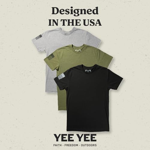 CLASSIC MENS TEE: It’s your new go-to crew neck t shirt made for everyday wear. Our Essential t shirts for men pack of 3 comes with a black, grey, and one green shirt, and features a minimalist design with just the Yee Yee flag logo on the sleeve.