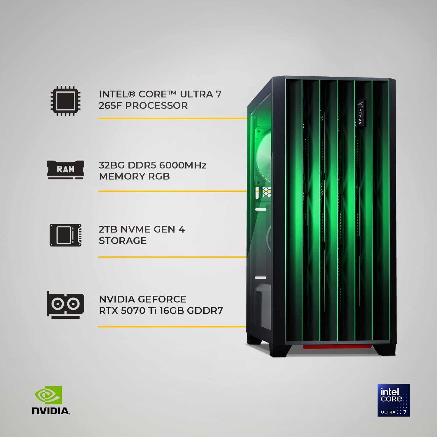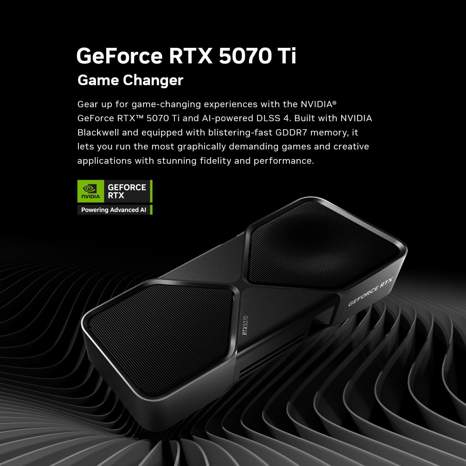 Next-Gen Graphics – GeForce RTX 5070 Ti 16GB GDDR7 GPU with ray tracing and AI acceleration for immersive visuals.