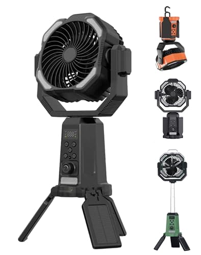 Yiuhhad Solar Camping Fan,With Light,Timer&Power Bank 10w 20000 mAh Battery Solar Powered 360° Rotatable Height Adjustable Foldabie Storage Outdoor Tent Fan, For Picnic,Fishing,Travel (black)