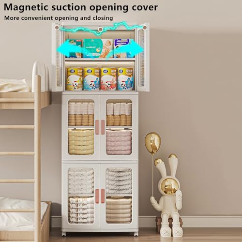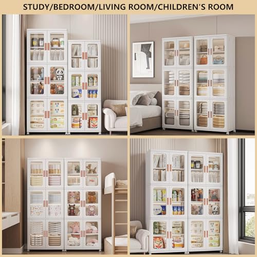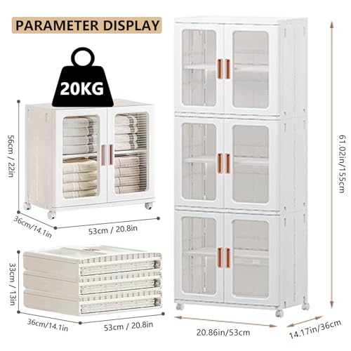 【Large Capacity & High Quality】 Each 3-Tier storage bin with lid measures 14.17″D x 20.86″W x 61″H,15.3″D x 25.6″W x 67.7″H inches, And Folded height is only 13/14.7 inches. The plastic storage box is made of high-quality materials so that it can hold up to 132 lbs (60kg). The panel has been thickened, so the bins with doors are more durable and sturdy. A must-have organizer for a tidy room.