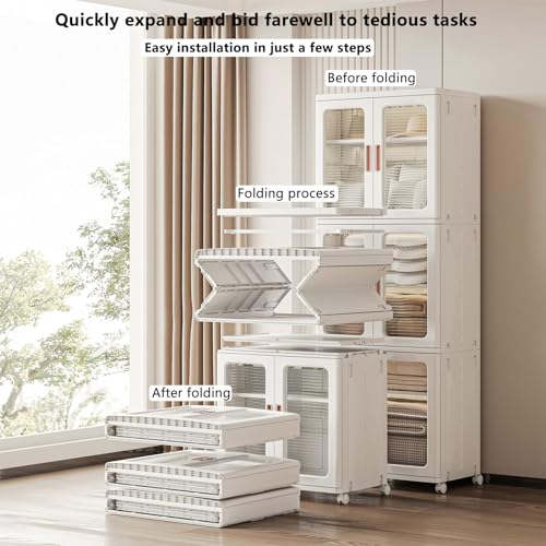 YIYHFKM Storage Bins with Lids,3 Tier Stackable Folding Storage Boxes Set for Home,Collapsible Plastic Storage with Double Door,Foldable Cabinet Organizer with Caster Wheels(2 Sets)