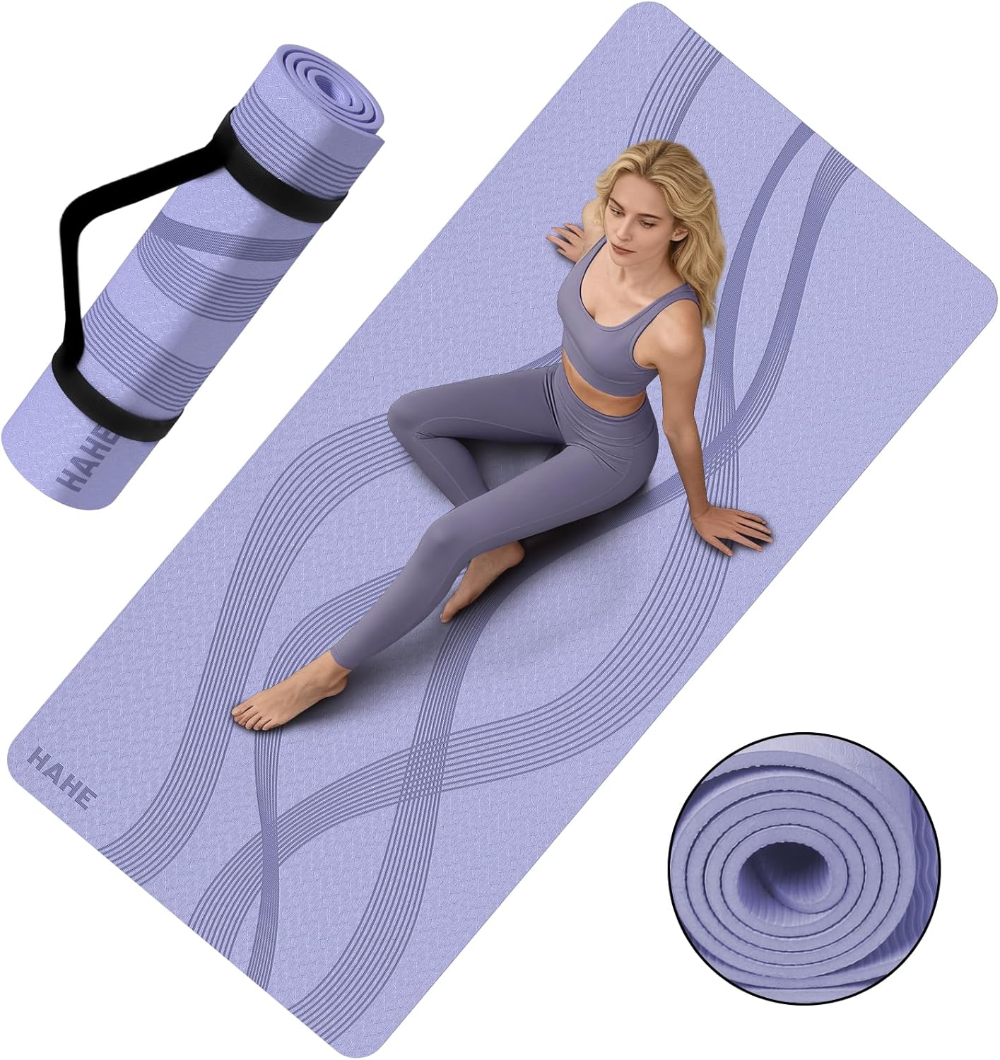 【DUAL-SIDED ANTI-SLIP TEXTURE】The HAHE yoga mat features a dual-textured non-slip surface design, delivering exceptional grip and superior friction to effectively minimise slippage on hardwood floors or tiled surfaces