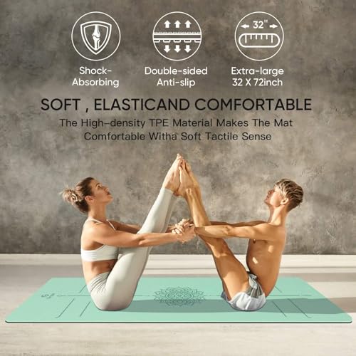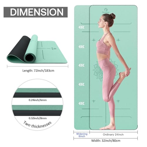 Yoga Mat Non Slip TPE Thick Yoga Mat with Alignment Mark, Large Size 72\”L x 32\”W x 0.32\”Th or 0.24\”Th, Anti-Tear Exercise & Fitness Mat for Yoga, Pilates & Floor Workouts (Green Black, Thickness-6mm)