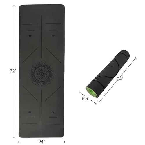 Yoga Mat with Alignment Marks – Lightweight Exercise Mat with Carry Strap for Home Workout or Travel by Wakeman Outdoors (Gray and Green)