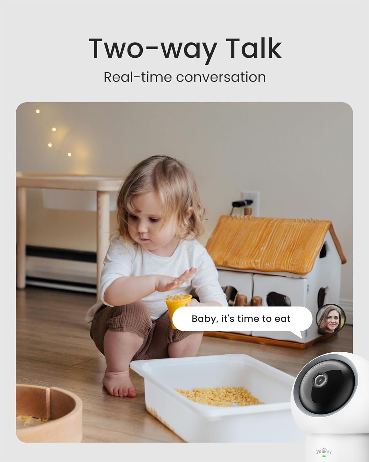 Swift Setup & Low-Latency Streaming: Get your Youkey P310 room camera up and running in seconds with easy Bluetooth pairing and dual-band WiFi (2.4GHz & 5GHz). Featuring WiFi 6, this indoor camera ensures ultra-reliable connectivity and smooth, lag-free video streaming.