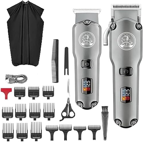 YUSIWOAL Mens Hair Clippers, 2PCS Cordless Combo Kit Hair Trimmer for Men Electric Washable Beard Hair Clipper Rechargeable Haircut Machine