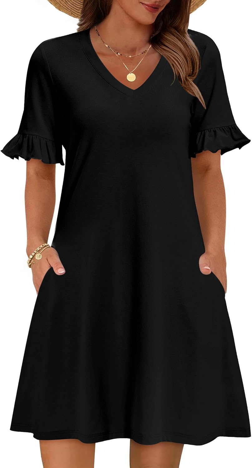 dresses for womens 2026/ summer mini dresses/ women knee length dresses/ casual dresses for women /short sleeve tunic dress/ ruffle sleeve shift dress