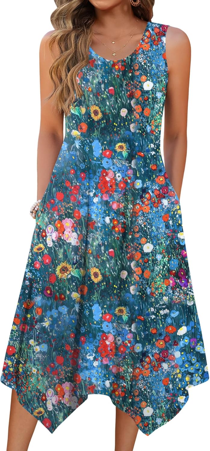 Zeagoo Womens Casual Dress for Summer Tank Dress Loose Flowy Beach Dress with Pockets Hankerchief Flare Midi Sundress 2026