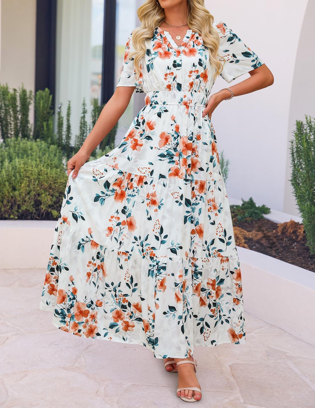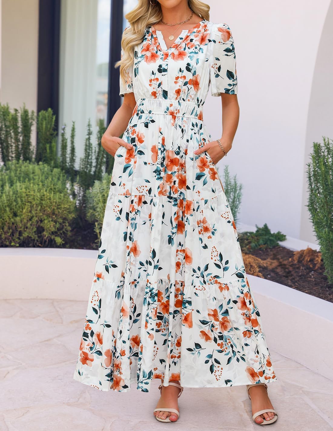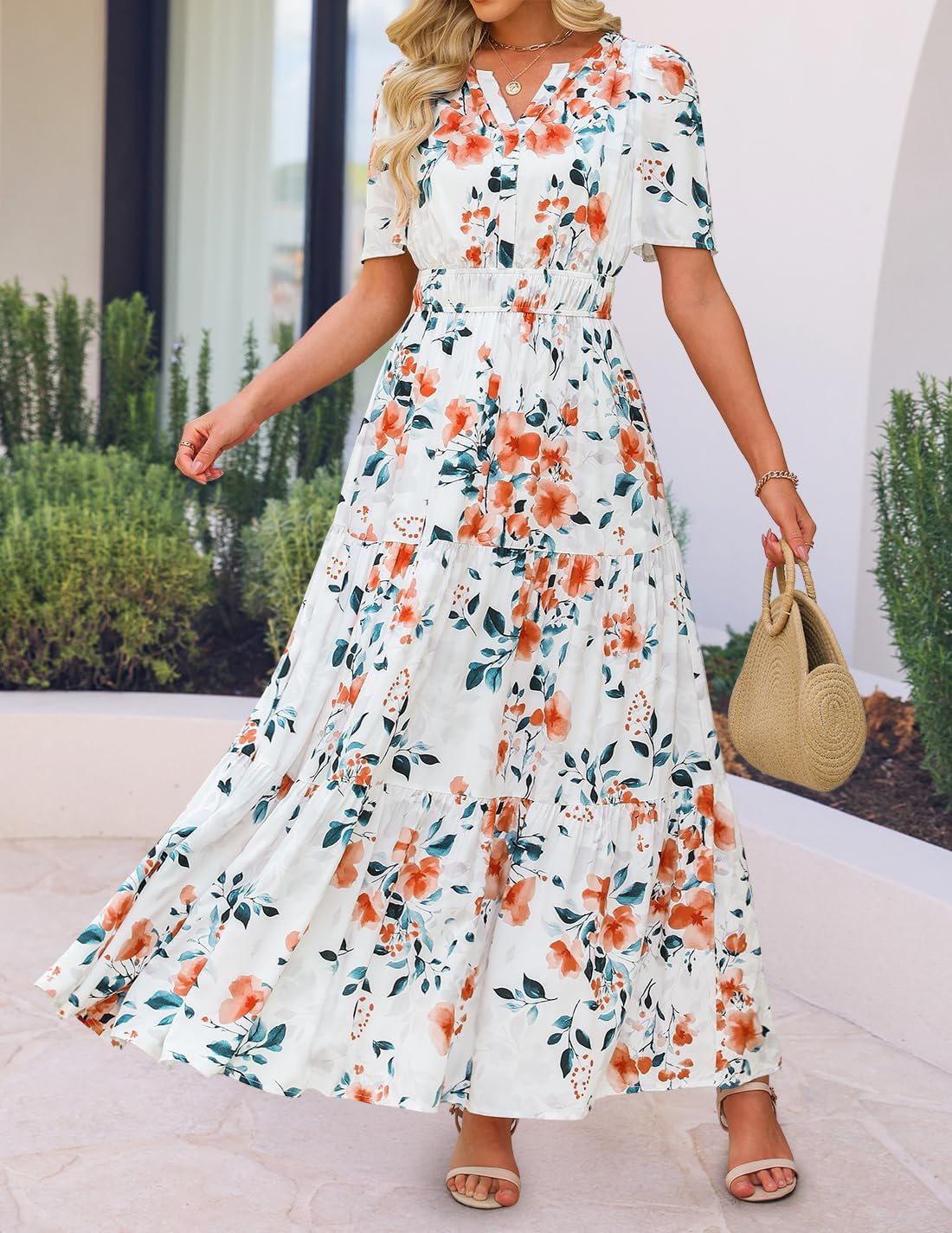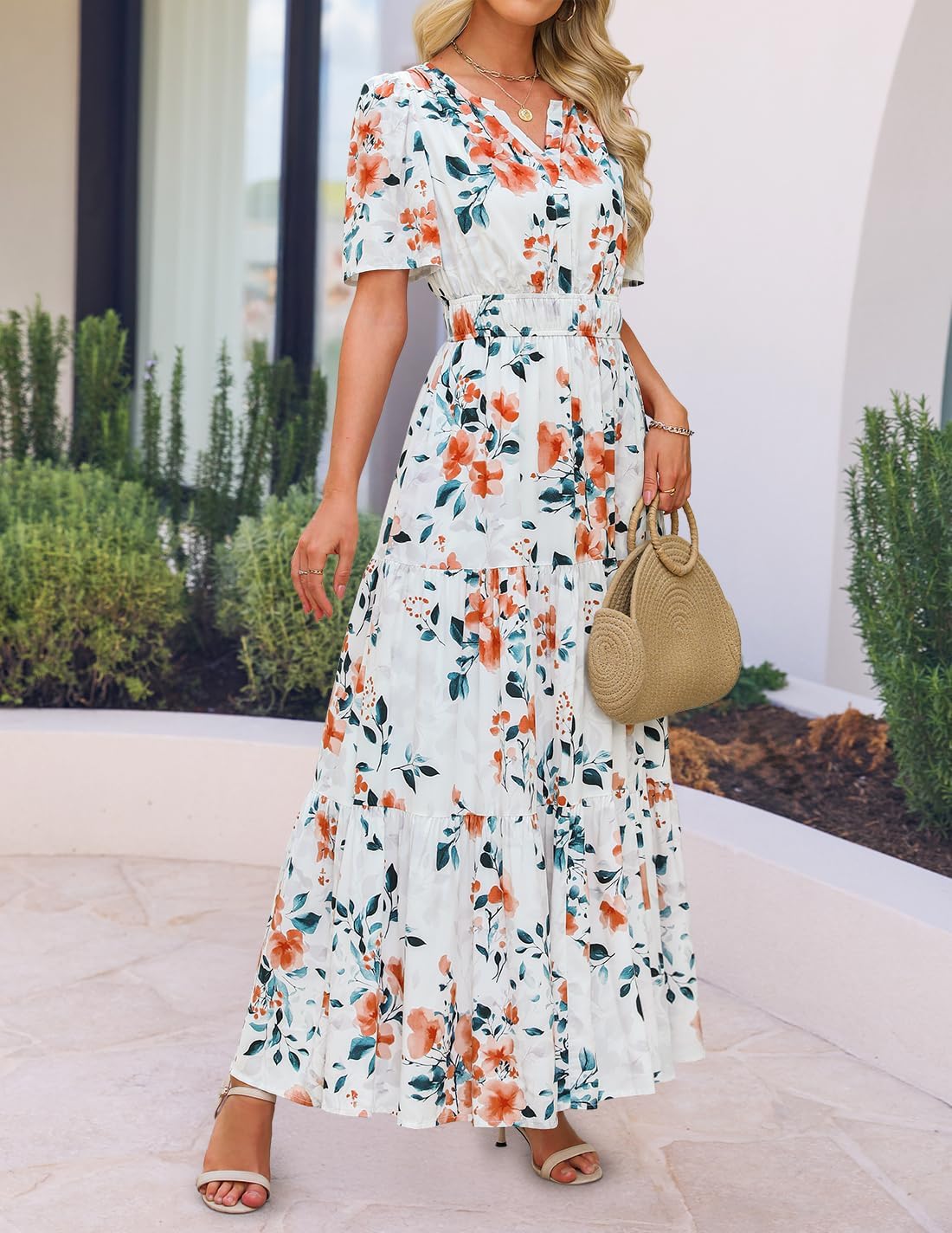 ZESICA Women’s 2026 Summer Spring Floral Boho Maxi Dresses Casual Short Sleeve V Neck A Line Flowy Beach Vacation Dress