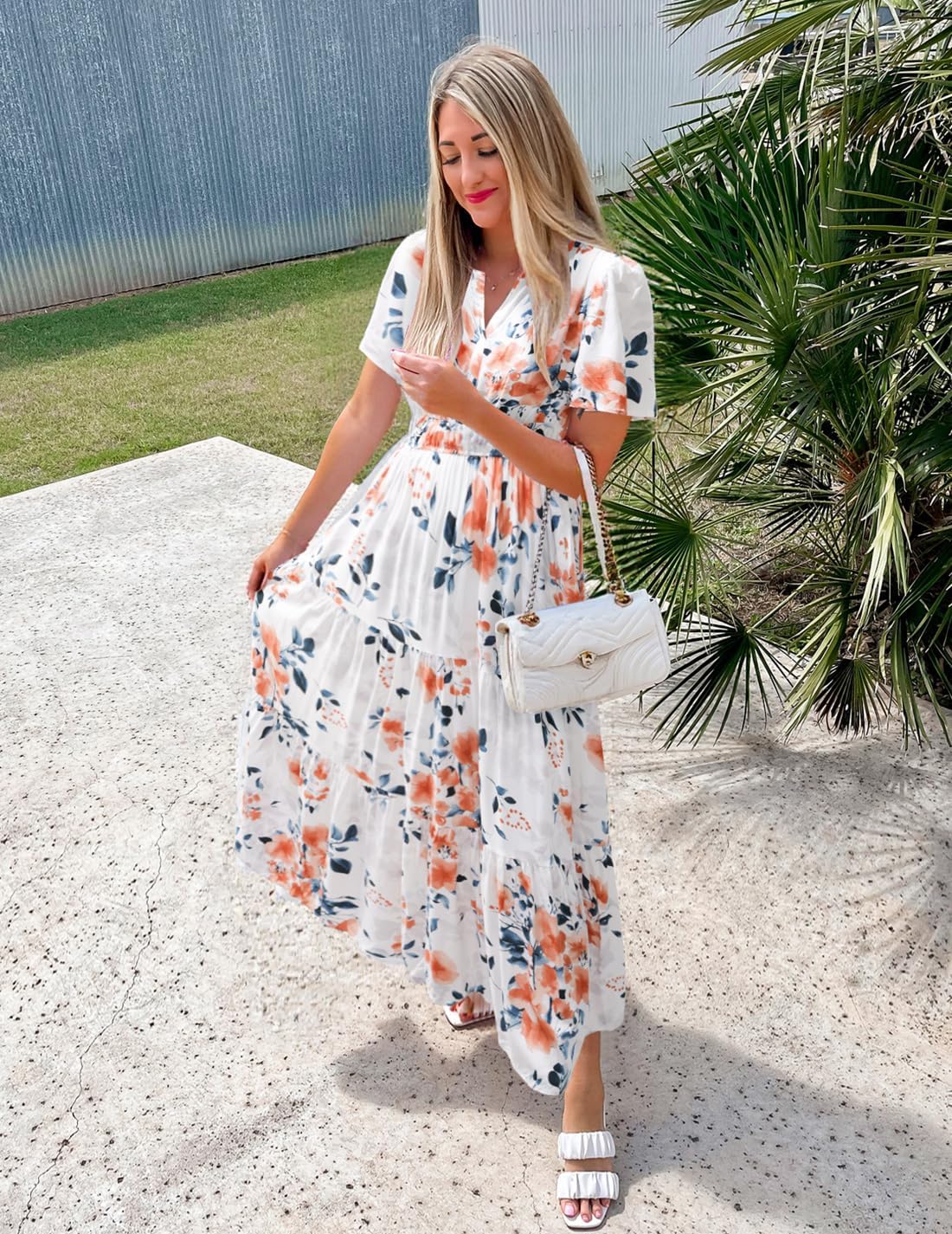 Women’s Spring Summer Boho Floral Flowy Midi Dress