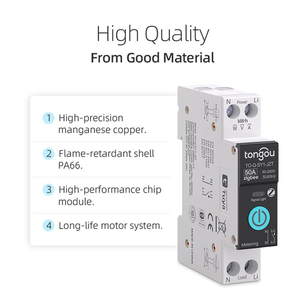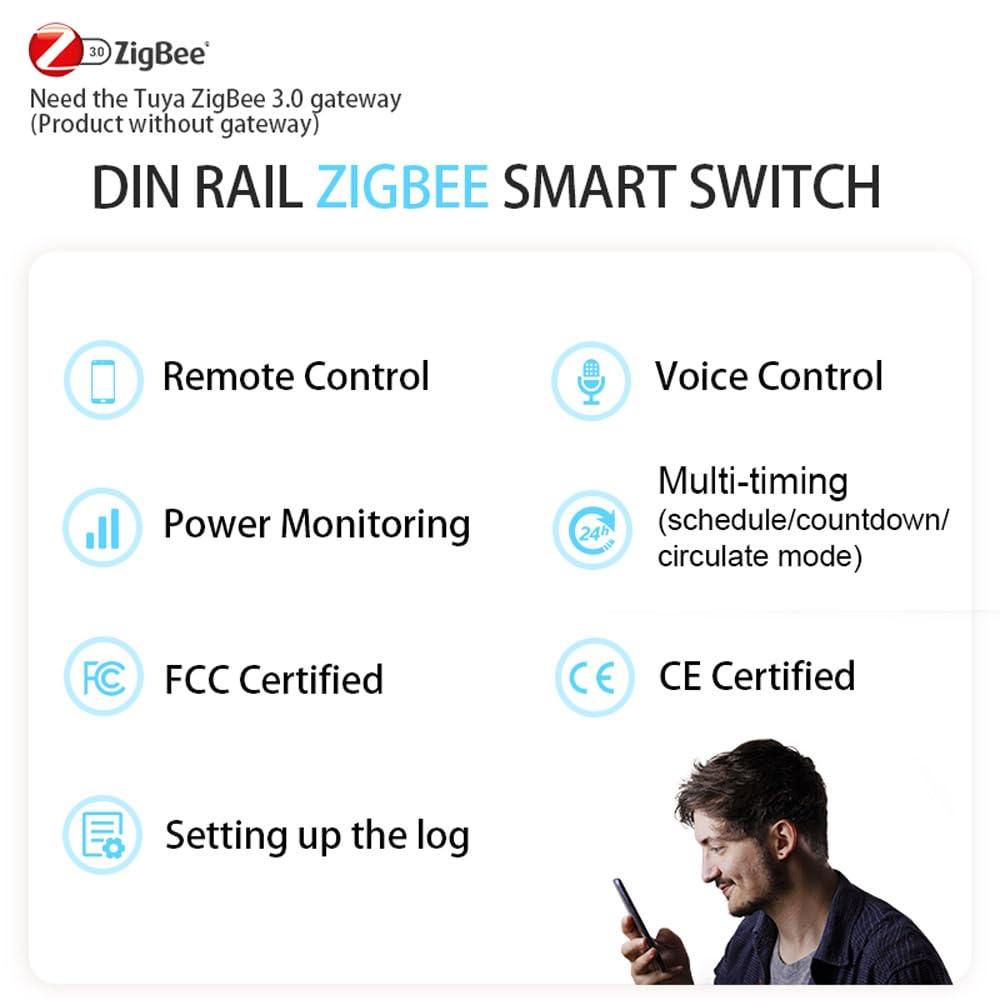 ZigBee DIY Smart Switch 50A| DIN Rail Switch| 1P+N 90-240VAC| Real-time Power Monitoring| Remote Control and Set Timer for Home Automation| Support Tuya/Smart Life| Voice Control| FCC Certified