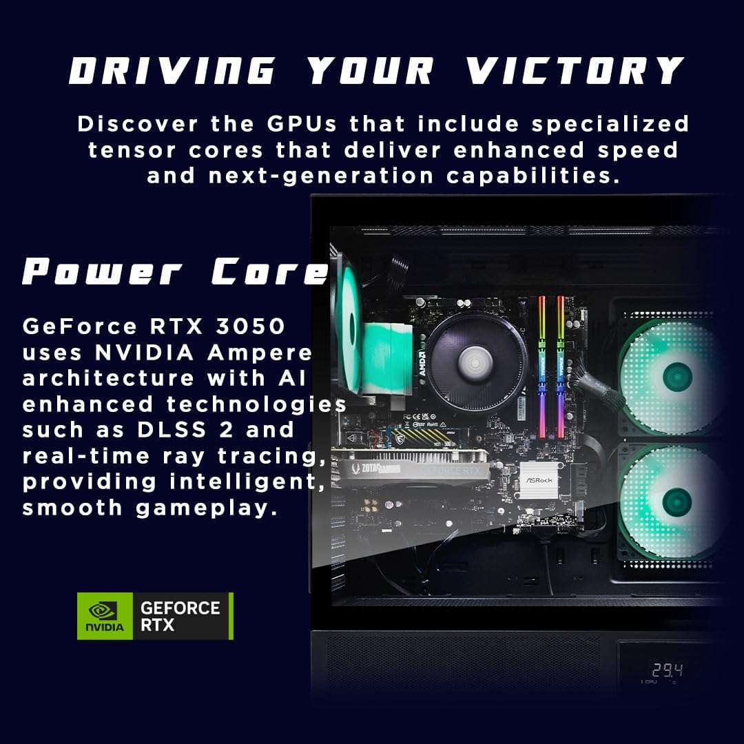 The ZOTAC GAMING GeForce RTX 3050 uses NVIDIA Ampere architecture with AI-enhanced technologies such as DLSS and real-time ray tracing, providing intelligent, smooth gameplay.