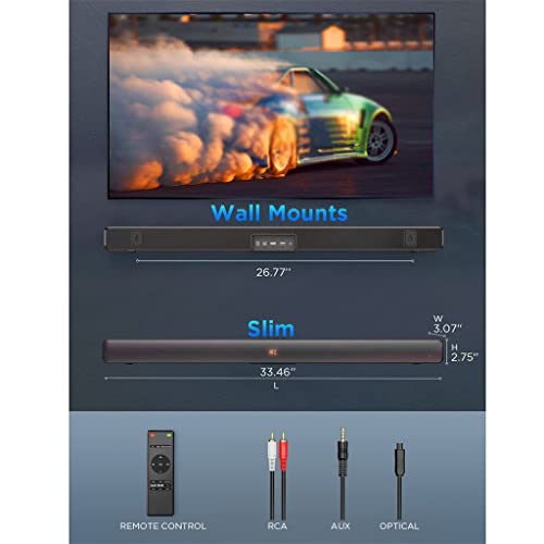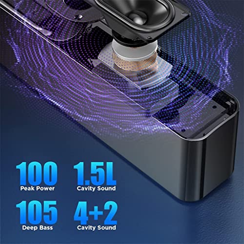 1.5L -large speaker cavity and over 2.6inch tall, the soundbar creates rich, powerful bass, the seperate left and right two0channel sound systems can achieve obvious sound image positioning and sound field effect.